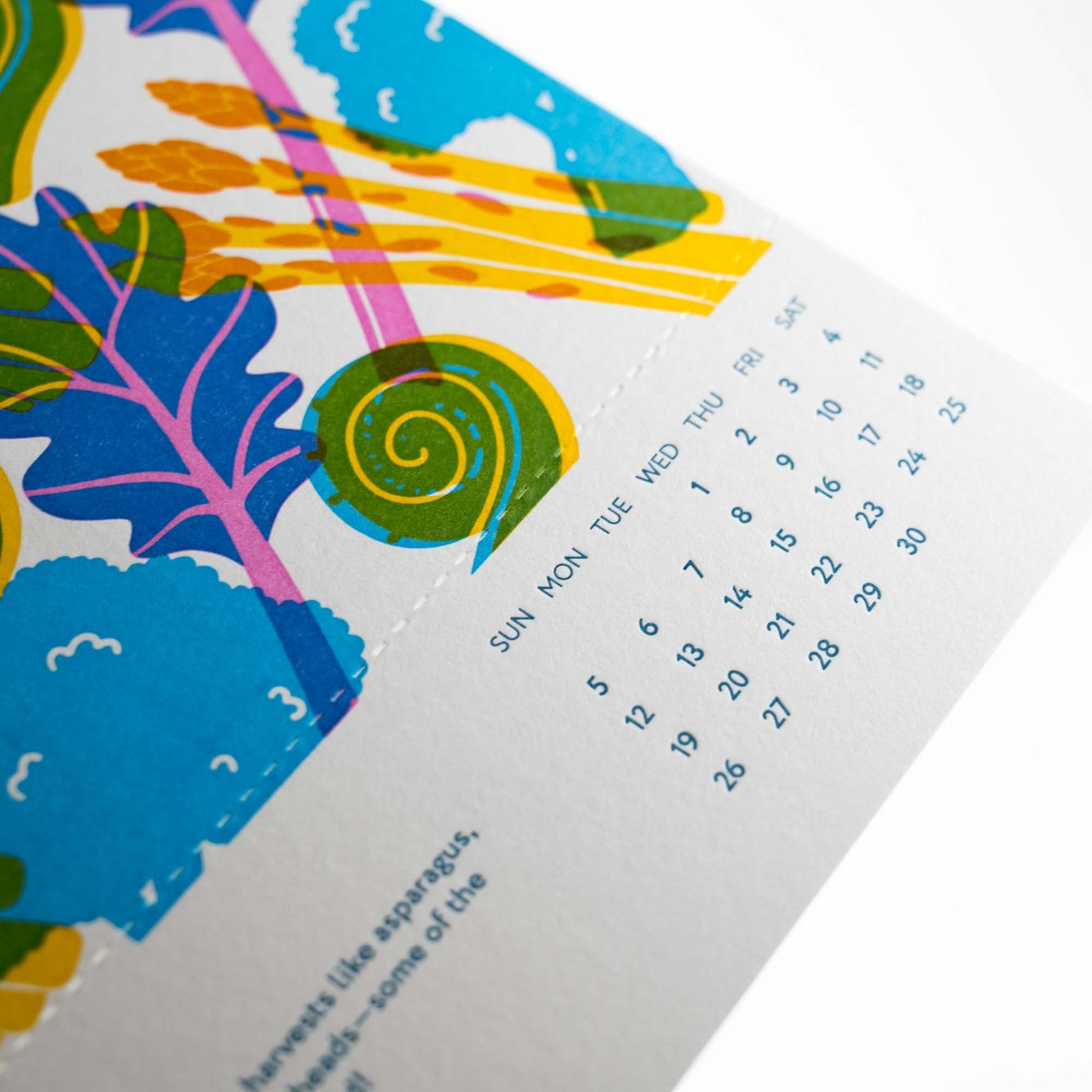 Each calendar is meticulously designed and printed on high-quality FSC-certified and recycled cardstock using plant-based inks. The pages also include a fun fact about farmers markets.