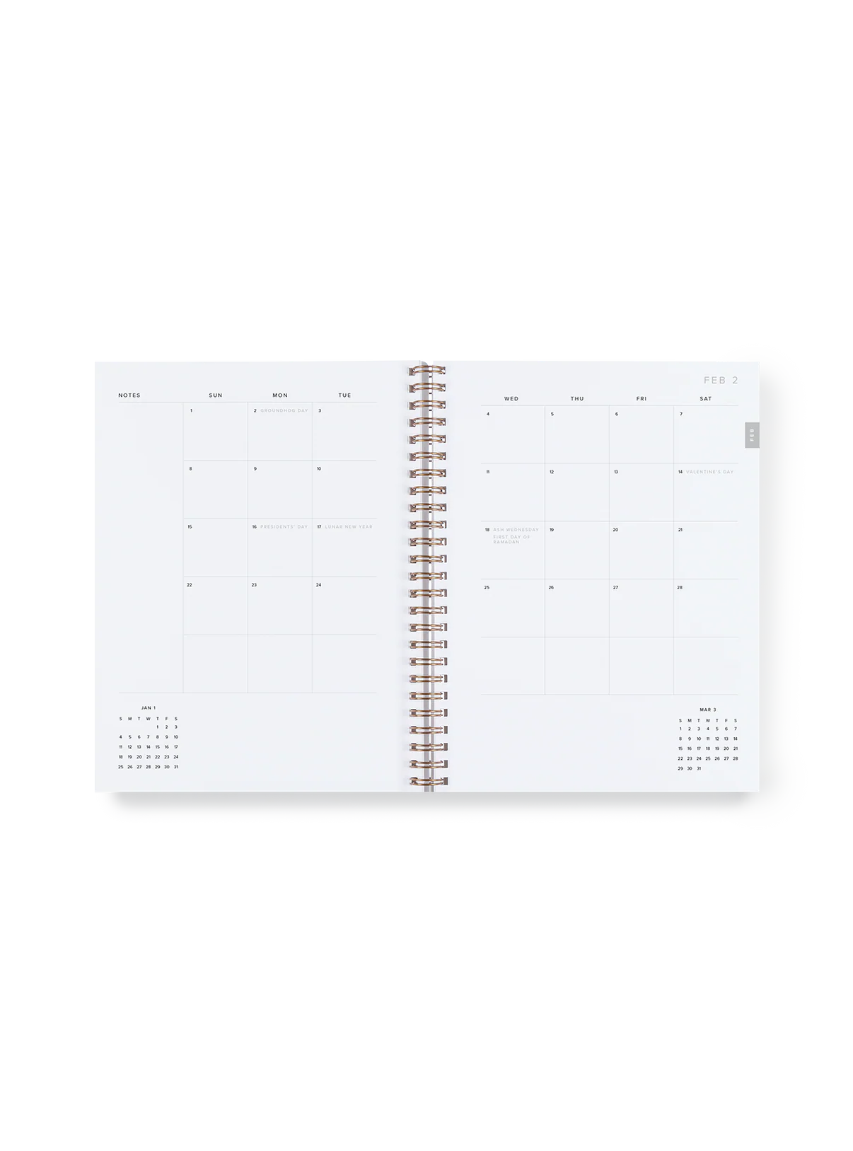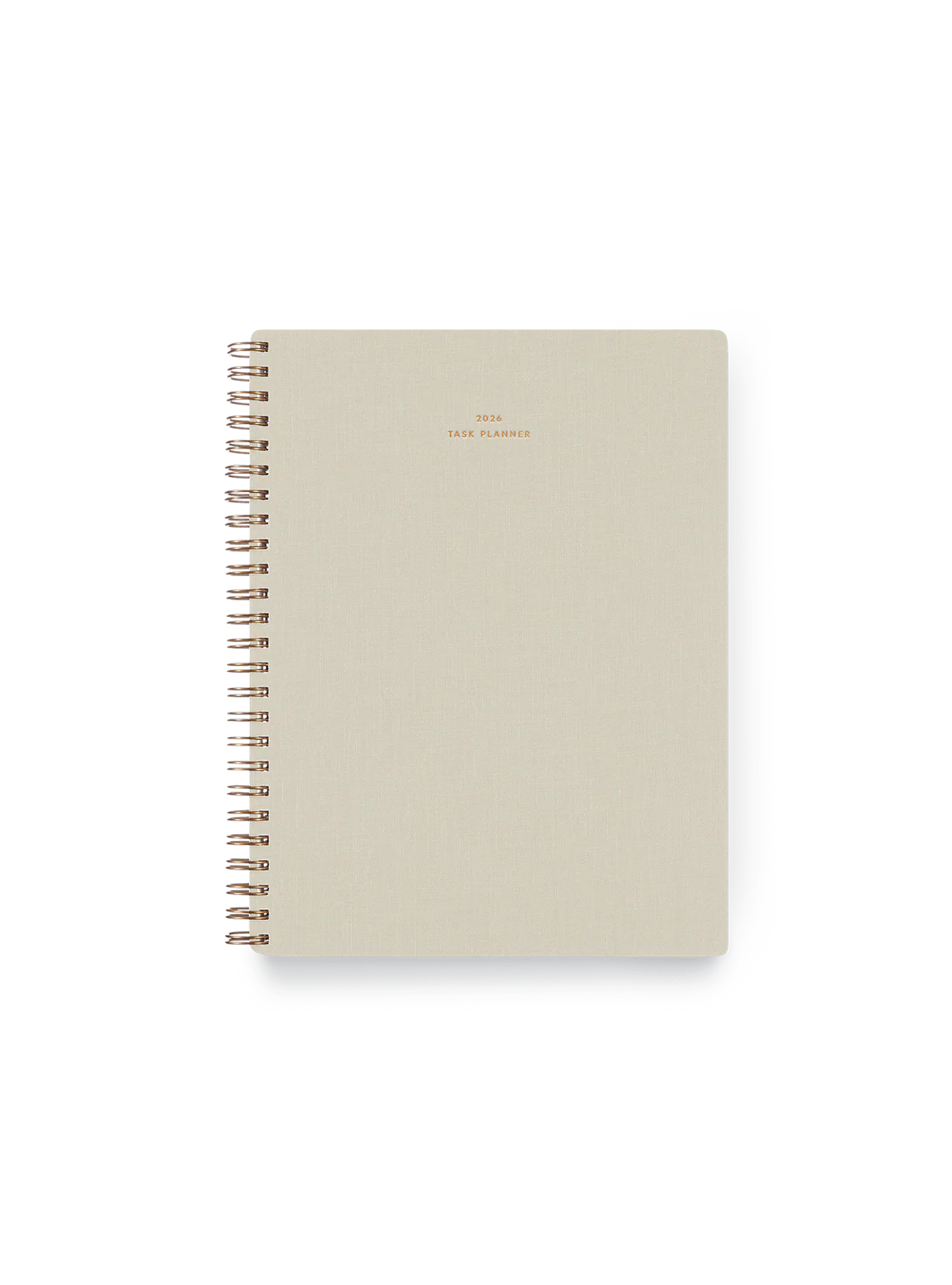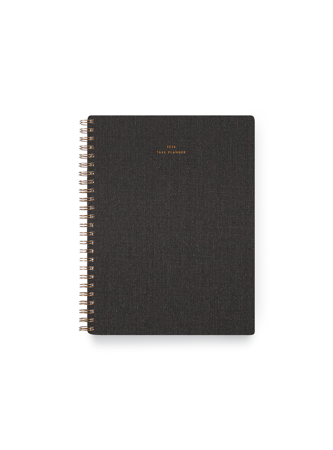 A smaller size of Appointed's Year Task Planner the 6.5" x 8.5" Compact Task Planner is designed with extra notes pages for the ideal notebook-planner hybrid. Featuring monthly and weekly layouts with coordinating tasks, plenty of lined pages, and a portable, throw-it-in-your-bag size, this planner is sure to become an indispensable tool for staying organized on the go. Plus, it's American-made with water-resistant cotton bookcloth covers and smooth 70 lb paper. Never miss a beat with this planner perfect for students, creatives, and more.