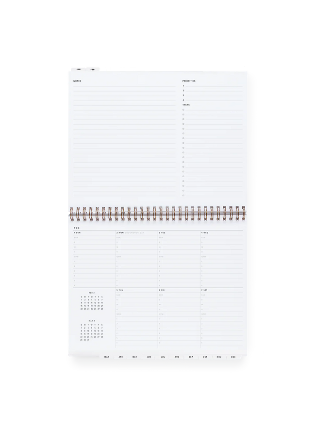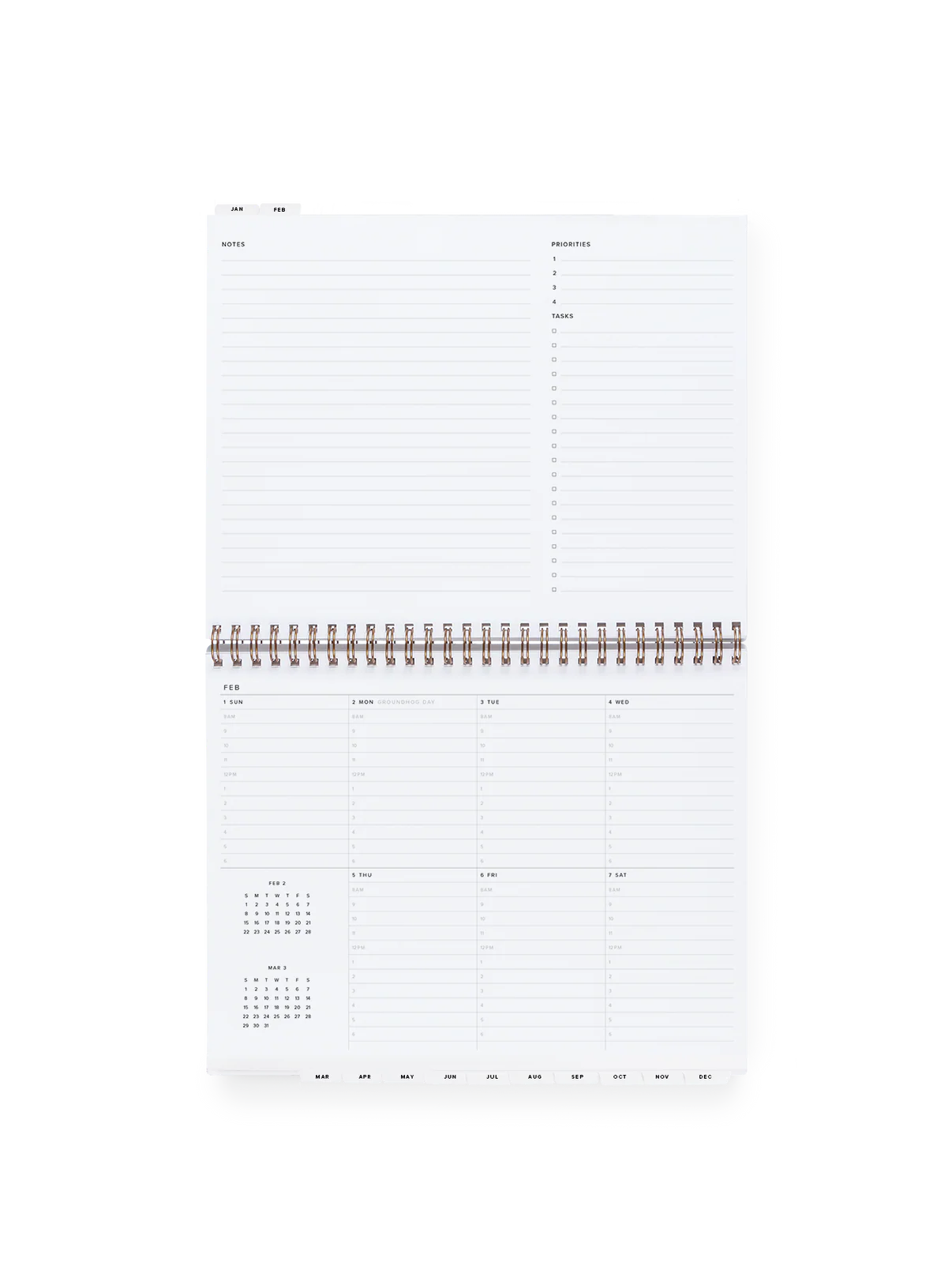 Appointed's Weekly Task Planner packs a productivity punch with weekly spreads, a Sunday start, and an hourly break-down of each day. The opposite page (or top page if laid open) features plenty of room for notes, tasks, and priorities so all your to-dos can live in one place, plus goals and monthly pages for big-picture planning. Better yet, wire-o top-binding makes this planner the ideal choice for left-handers. We've compiled your favorite details from our best-selling formats with innovative elements for planning made simple.
