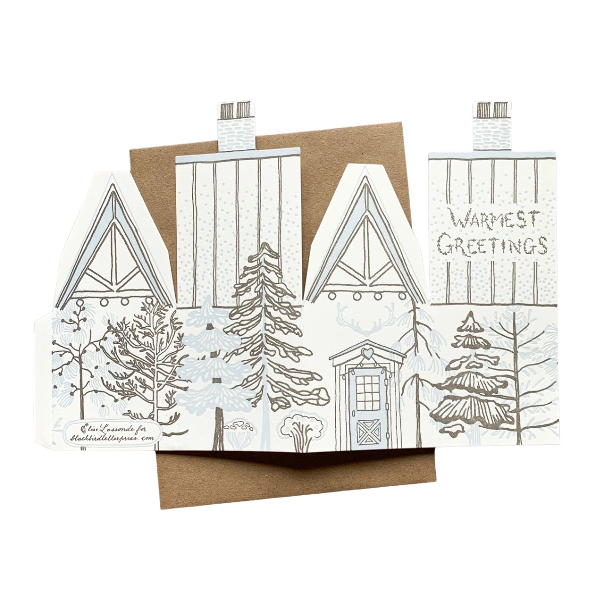 - Letterpress printed card with ice blue and forest brown ink on 118# cotton paper