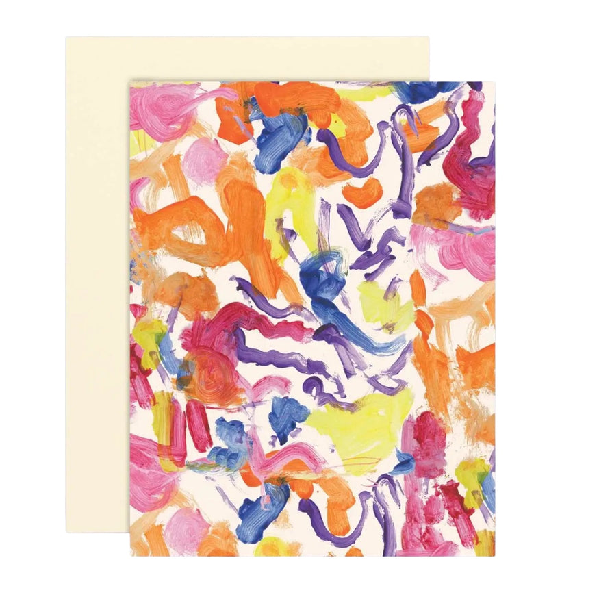 A beautiful abstract blank card in sunset hues. Painted by Zinnia Lulu Batra-Leary, age 4. From the Lil Darlin' collection, featuring art by kids for kids.