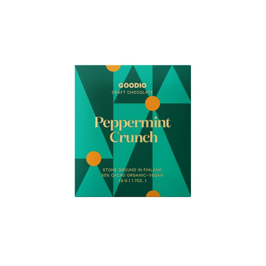 Taste the peppermint infused birch sugar crystals on top of the finest craft chocolate. Cool and crunchy as the first winter ice.