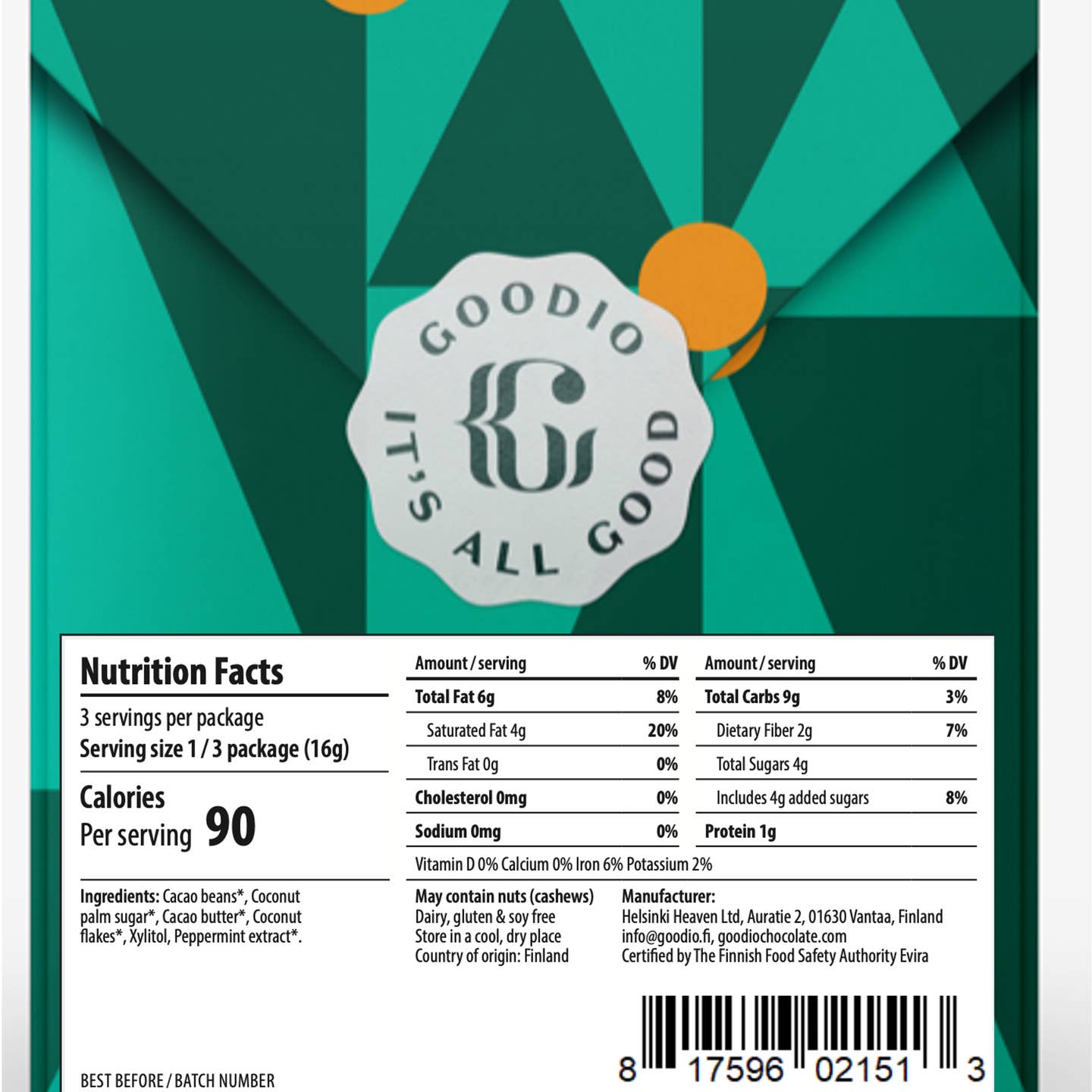 - This bar is proudly handmade with love in Finland - the happiest country in the world by Goodio Chocolate Artists