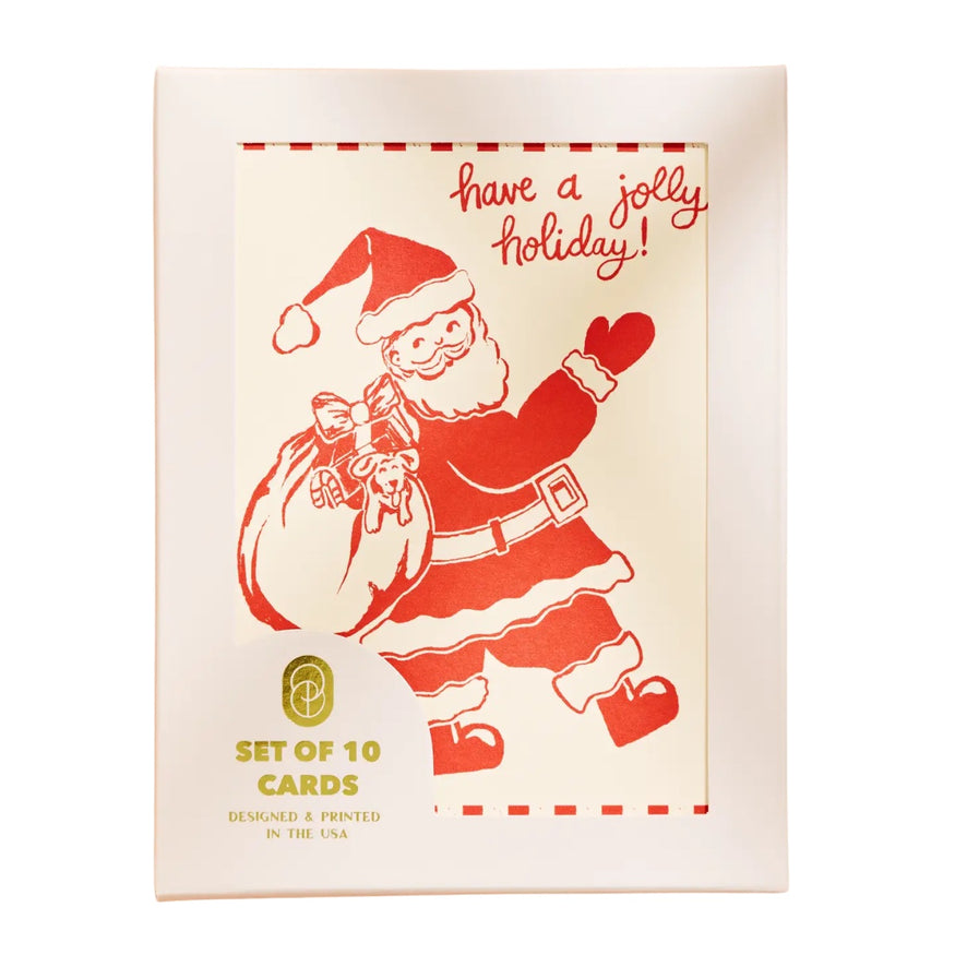 Have a jolly holiday with this hand drawn Santa who is bringing you a puppy!