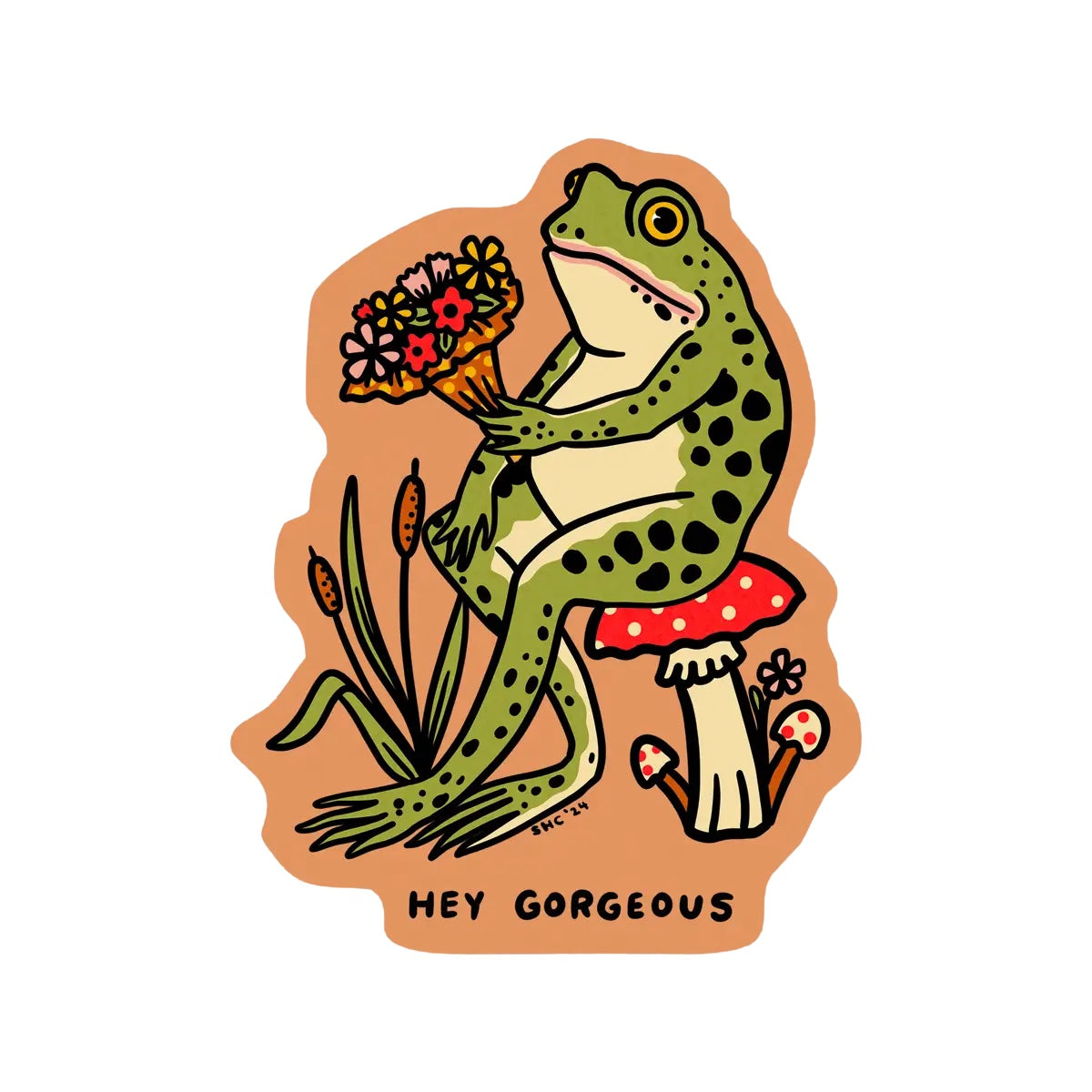 This very handsome frog is giving you a compliment AND a bouquet of flowers. What more do you want?!