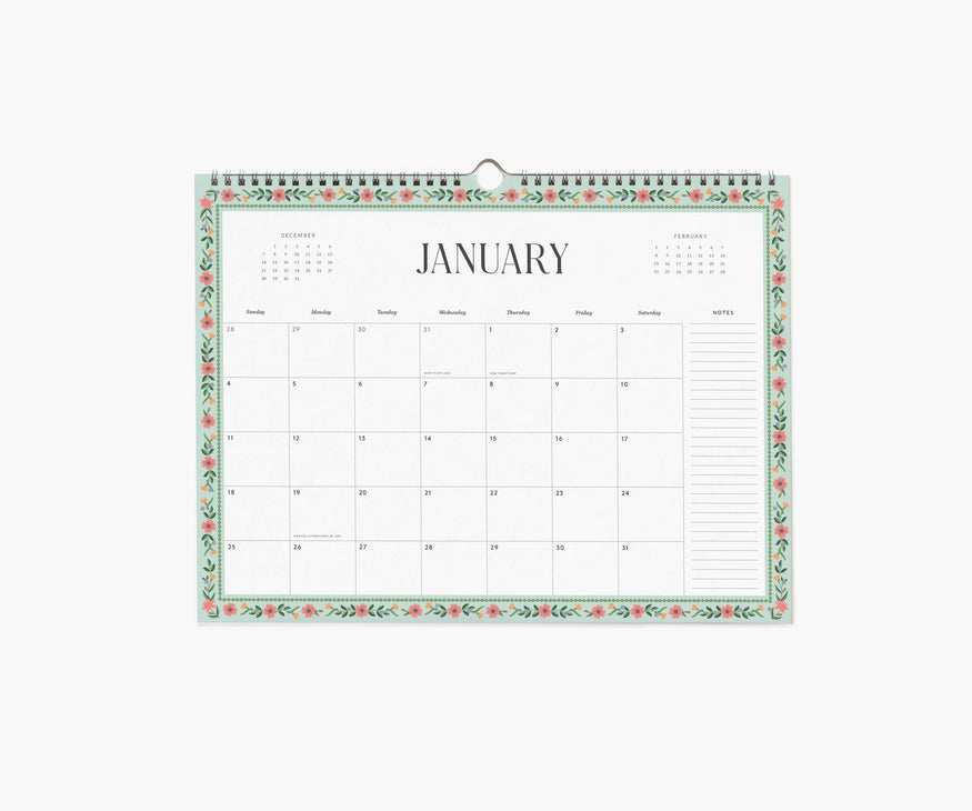 A little extra beauty for your day-to-day plans. In this twelve-month appointment calendar, each month features space for notes and daily engagements, plus a spiral binding with a center notch to make hanging simple.