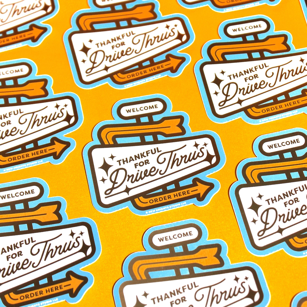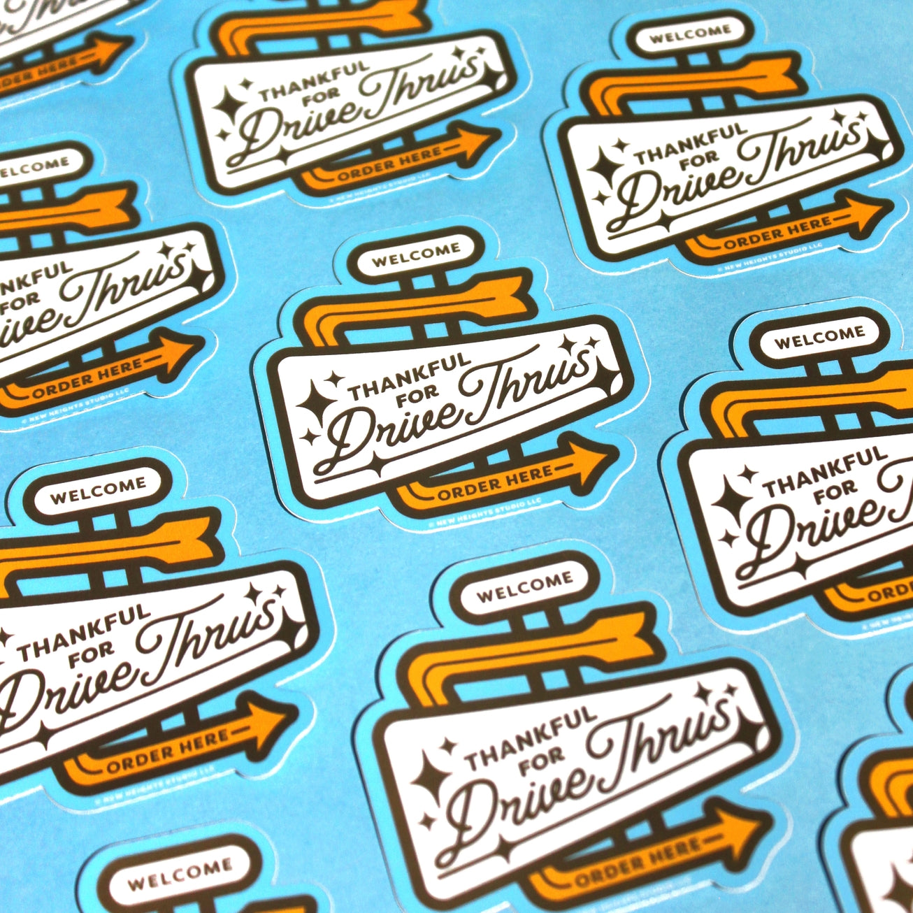 This “Thankful For Drive Thrus” matte metallic sticker has a wonderful retro signage look and a fast food drive-thru aesthetic! This cute yet funny vinyl sticker makes the perfect gift for your foodie friend who you love to make those late night food runs with. This would also make such a fun gift to a friend who’s in the fast food industry!