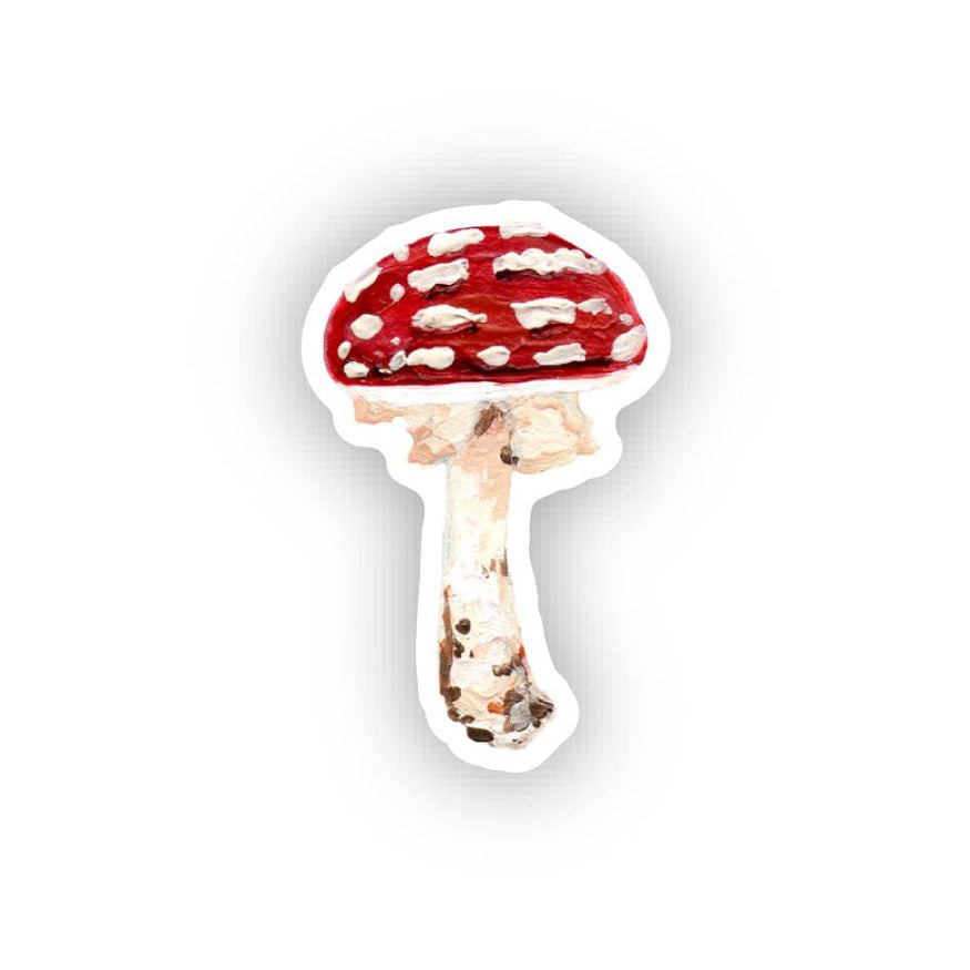 Tiny mushroom waterproof and weatherproof sticker made from an original acrylic painting.