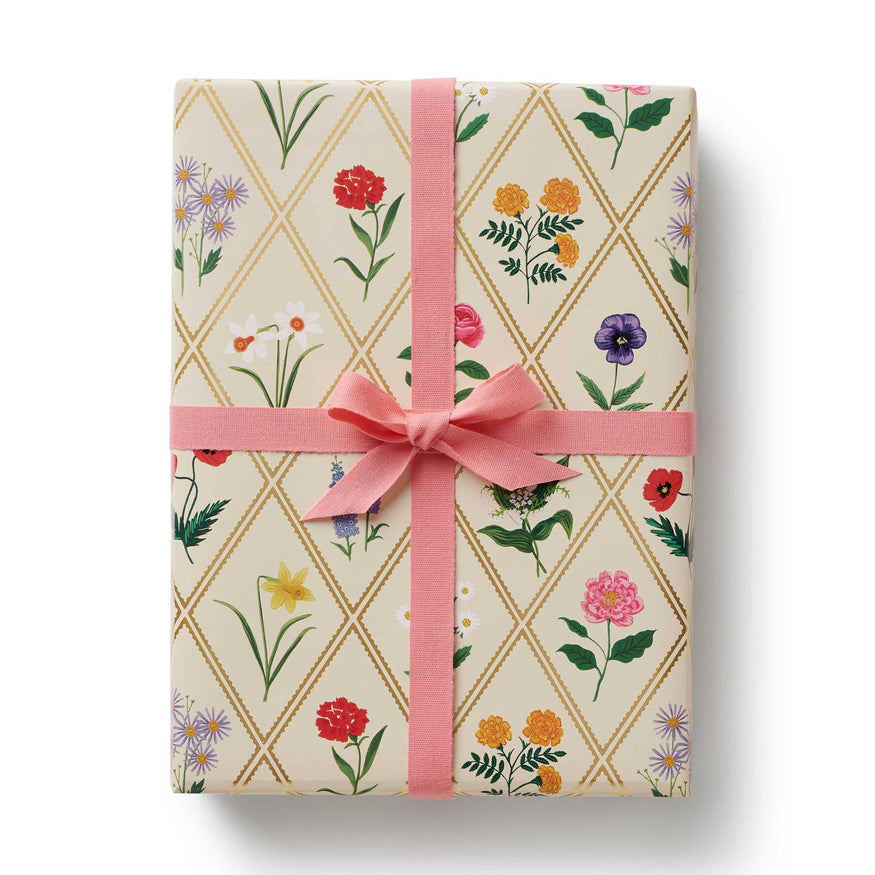 Dress up presents and projects with this eight-foot wrapping roll, featuring hand-illustrated garden florals.