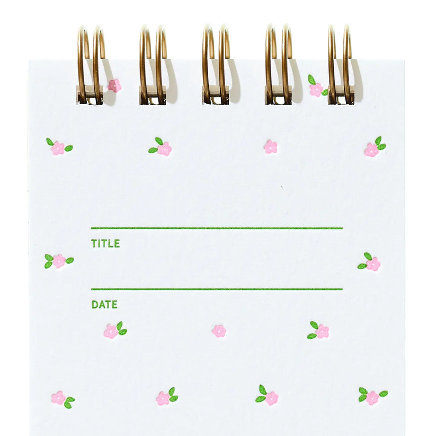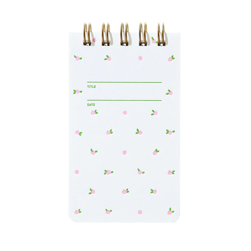 The Special Edition Mini Floral Pink Reporter, a compact notebook for taking quick notes, sketching out ideas, or catching hot scoops. With a letterpressed cover and beautiful interior pages, this notebook was designed, printed and assembled by hand in the US.
