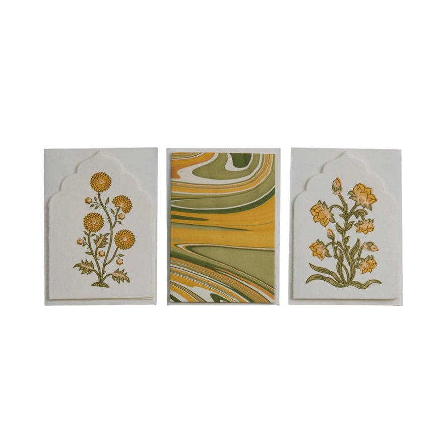 This boxed set features 6 beautiful, die-cut notecards and envelopes, handcrafted by artisans in India, using traditional techniques of wood block printing and hand marbling.